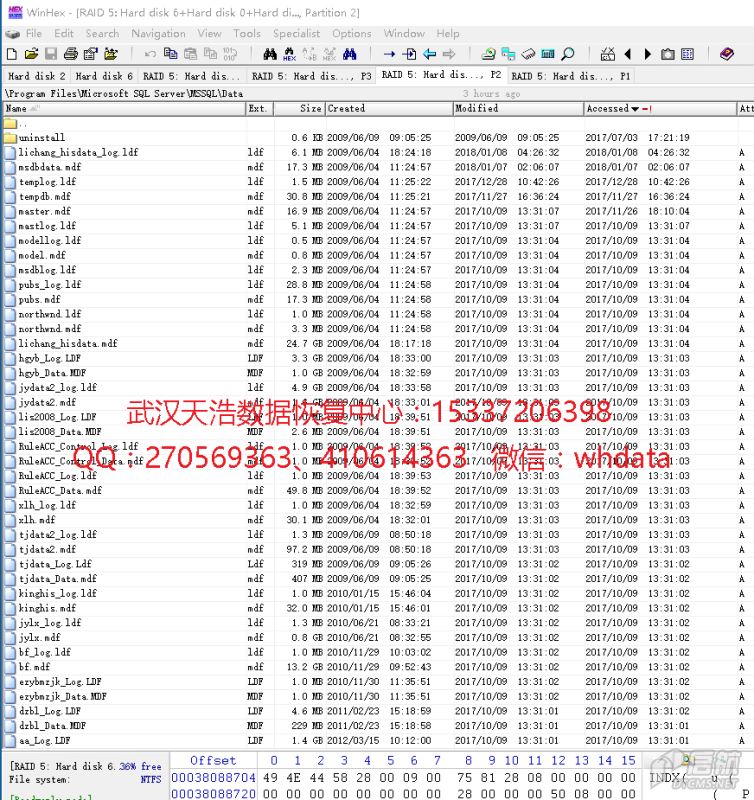 解决方案:我们收盘后,检测发现,2块有固件问题,我们使用专业工具修复硬盘固件问题,然后对每个硬盘做物理镜像,镜像完对镜像进行分析,得出RAID原始参数,重组RAID5,剔除先掉线的盘,里面所有数据基本全部完美恢复,包含客户公司的多个数据库,经验证完美恢复!