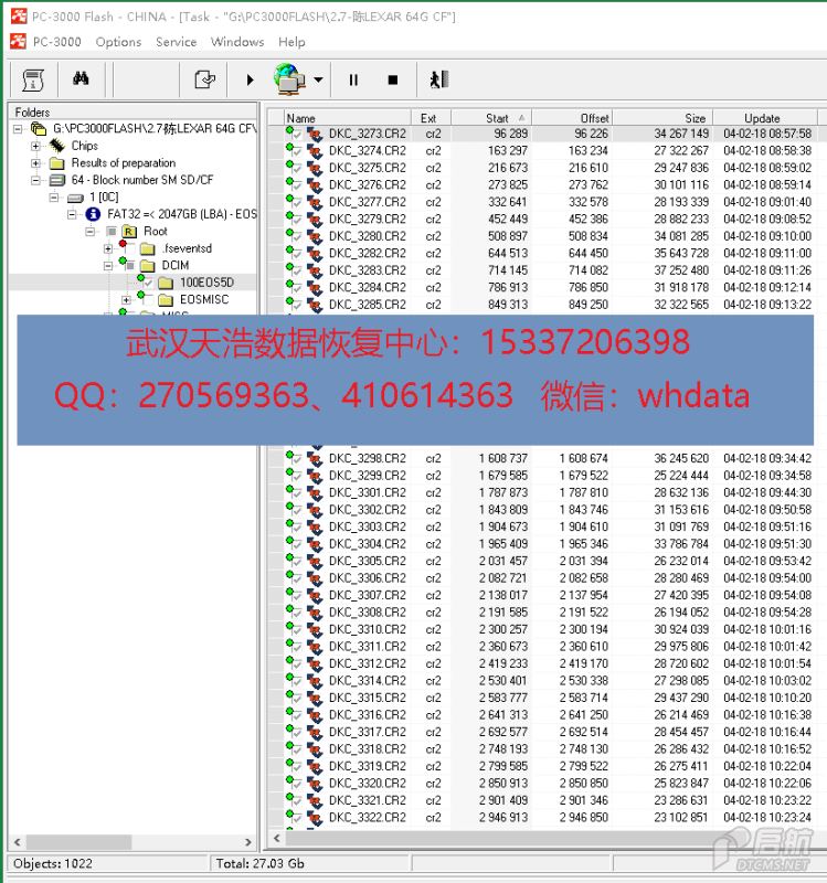 解决方案:接到CF卡后,我们取下FLASH芯片,使用专业的FLASH恢复工具PC3000 FLASH,读取,再分析重组,成功恢复客户里面的几乎全部照片素材。