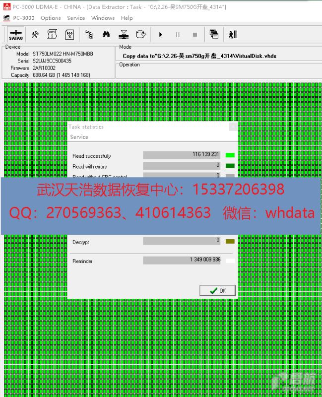 解决方案:收到硬盘后,我们在无尘环境更换兼容的磁头,再接到数据恢复工具PC-3000 UDMA Express上,通电硬盘认盘,DE分头镜像,成功恢复客户多年生活及到各地旅游的照片!