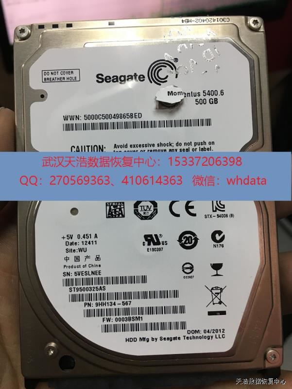 硬盘型号:ST9500325AS SN:5VESLNEE FW:0003BSM1 电路板:100536286