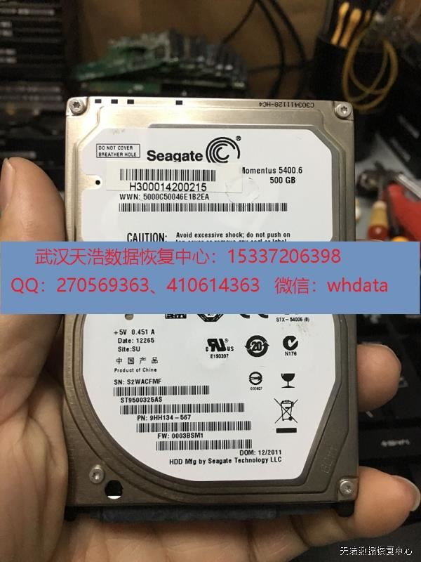 硬盘型号:希捷ST9500325AS SN:S2WACFMF FW:0003BSM1 电路板:100536286