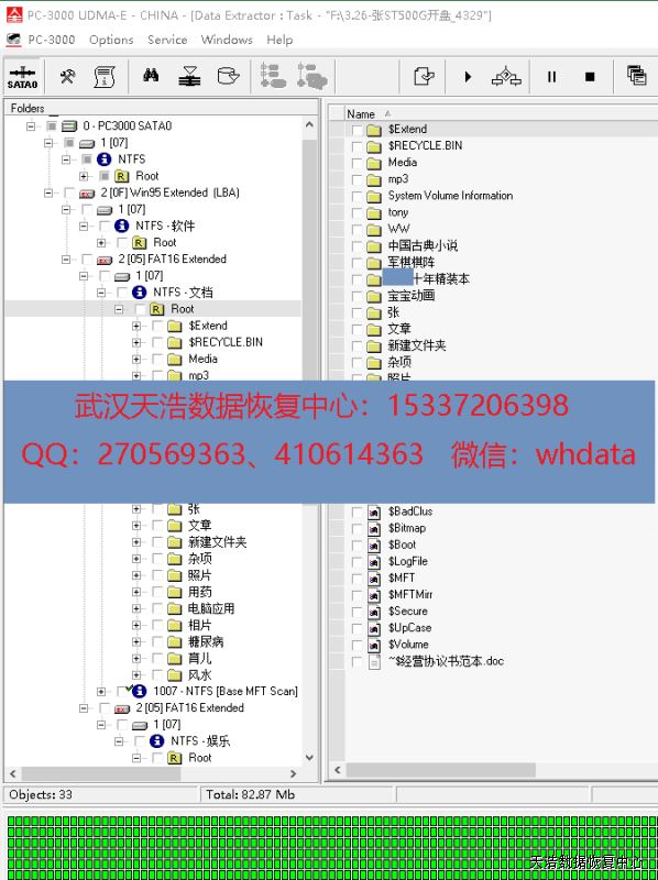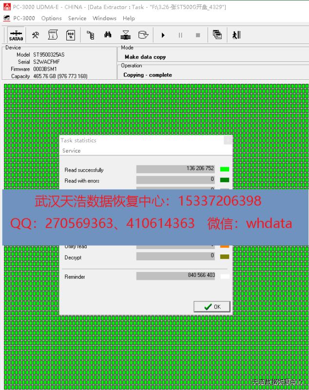 解决方案:收到硬盘后,接到数据恢复工具PC-3000 UDMA Express上,检测发现有一个磁头不良,跟客户沟通报价后,我们在无尘环境打开硬盘,更换兼容的磁头,再接到数据恢复工具PC-3000 UDMA Express上,通电硬盘认盘,DE分头镜像,成功恢复客户硬盘里面的大部分数据!