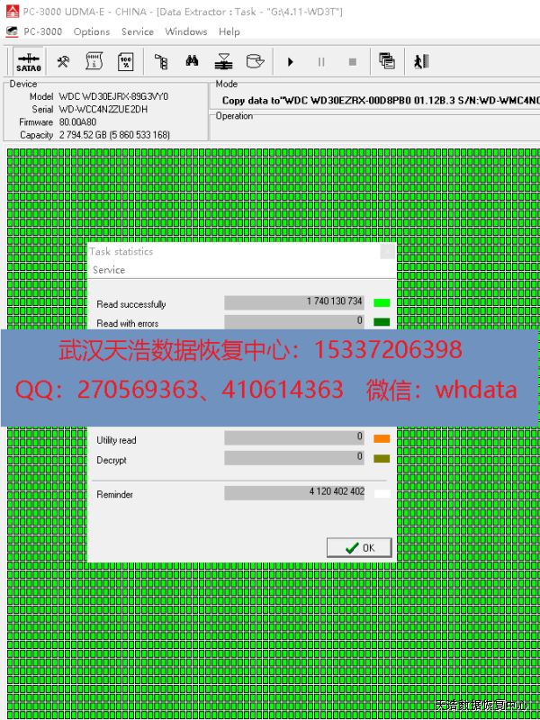 解决方案:收到硬盘后,接到数据恢复工具PC-3000 UDMA Express上,通电不认盘,检测发现固件损坏,修复固件,断电再通电,硬盘正常认盘,DE镜像,成功恢复硬盘里面客户公司的几乎全部资料。