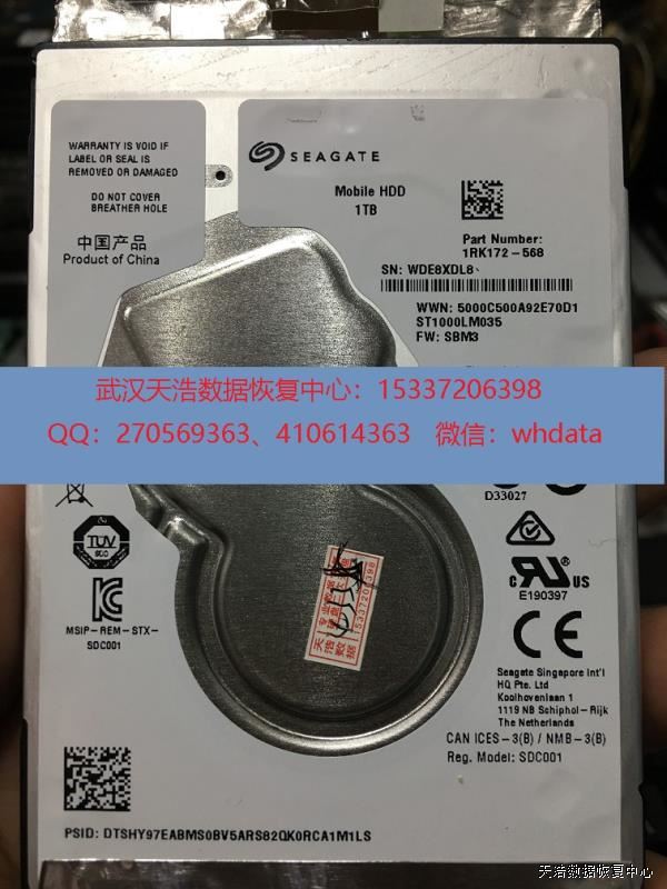 硬盘型号:ST1000LM035-1RK172 SN:SBM3 FW:WDE8XDL8 电路板:100809471