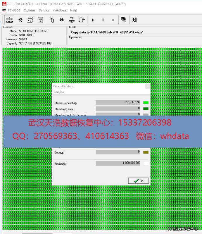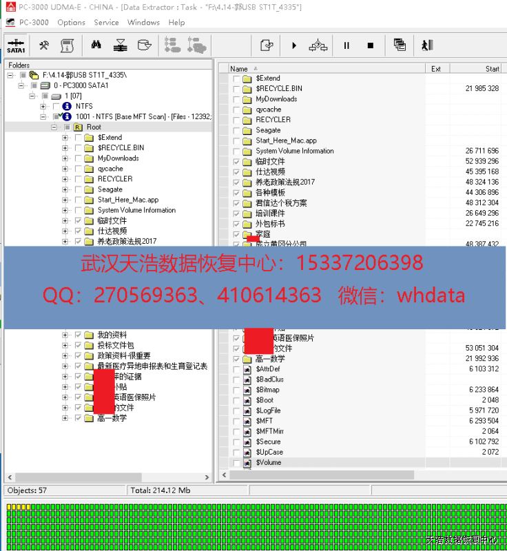 解决方案:收到硬盘后,接到数据恢复工具PC-3000 UDMA Express上,检测发现固件有问题,修复固件后,再通电硬盘认盘,DE分头镜像,成功恢复客户硬盘里面的几乎全部数据!