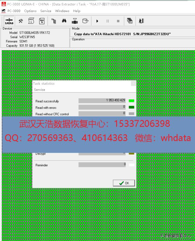 解决方案:收到硬盘后,接到数据恢复工具PC-3000 UDMA Express上,修复固件有问题,再通电硬盘认盘,DE分头镜像,成功恢复客户硬盘里面的几乎全部数据!