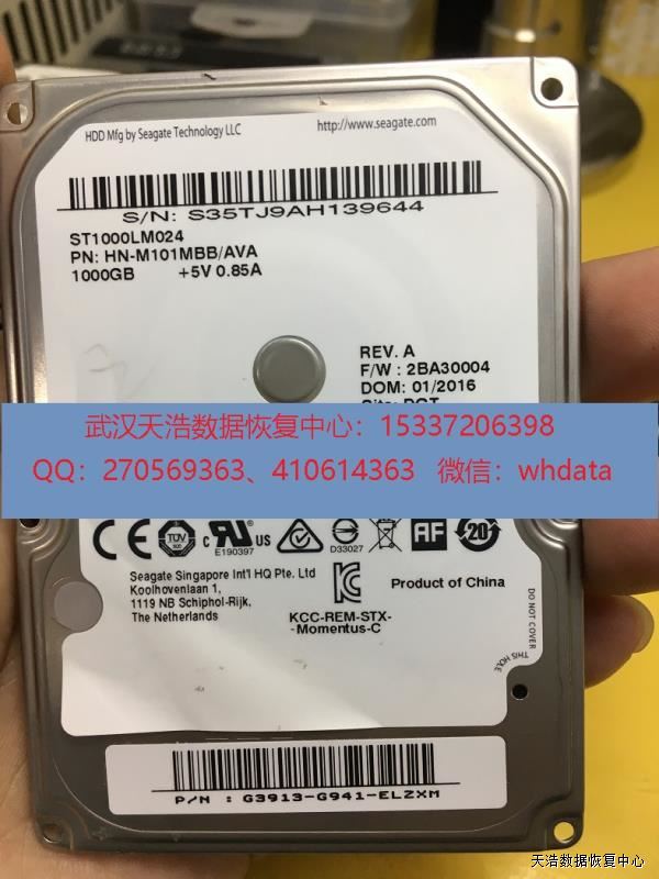 硬盘型号:ST1000LM024 HN-M101MBB SN:S35TJ9AH139644 FW:2BA30004