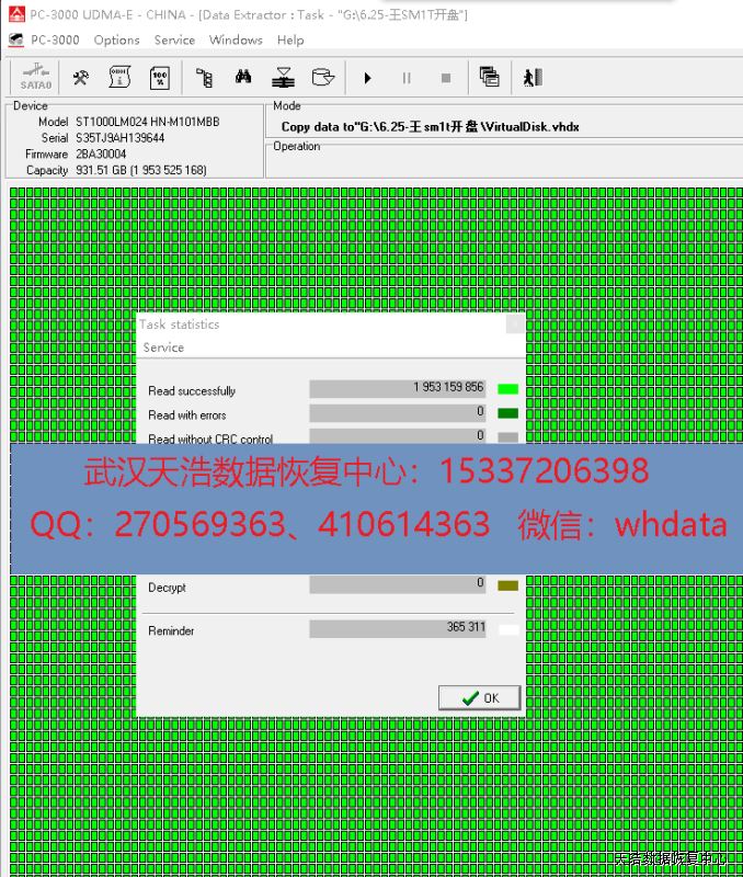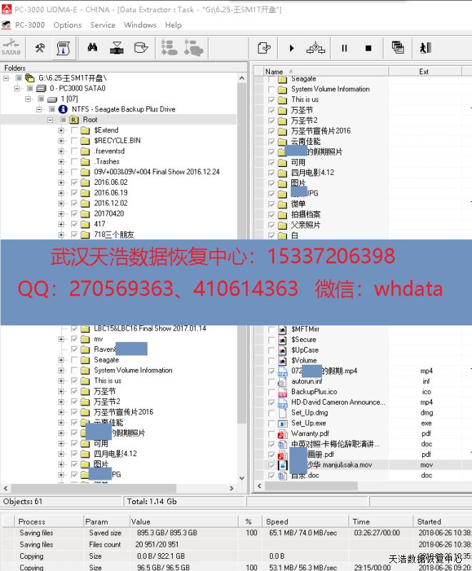 解决方案:收到硬盘后,我们在无尘环境更换兼容的磁头,再接到数据恢复工具PC-3000 UDMA Express上,通电硬盘认盘,DE分头镜像,成功恢复客户的几乎全部照片和视频!