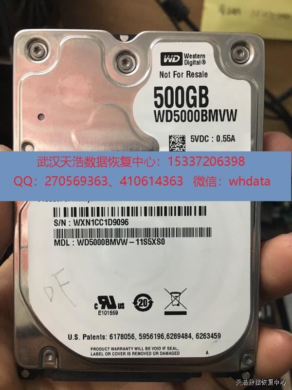 硬盘型号:WD5000BMVW-11S5XS0 SN:WXN1CC1D9096 FW:3001U 电路板号:771801-000