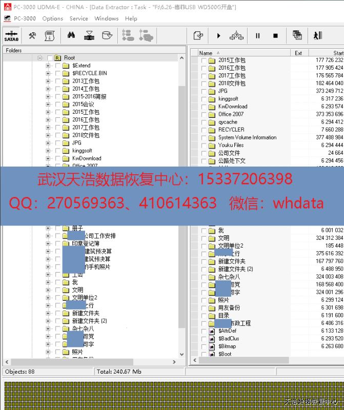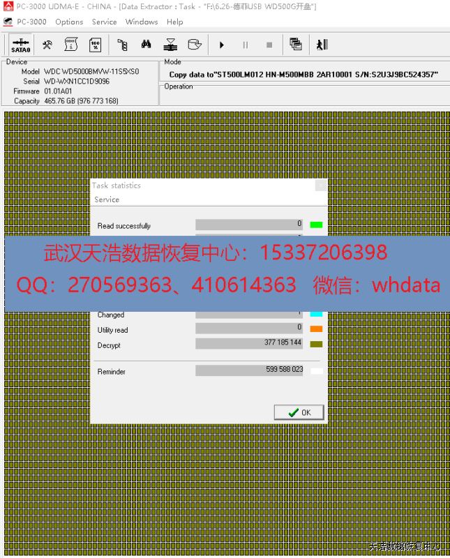 解决方案:收到硬盘后,我们在无尘环境更换匹配的磁头,再接到数据恢复工具PC-3000 UDMA Express上,通电硬盘正常认盘,检测发现硬盘带硬件加密,DE解密后,成功看到分区和文件目录,镜像,成功恢复硬盘里面客户的几乎全部资料。