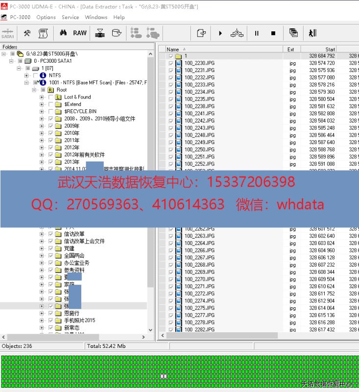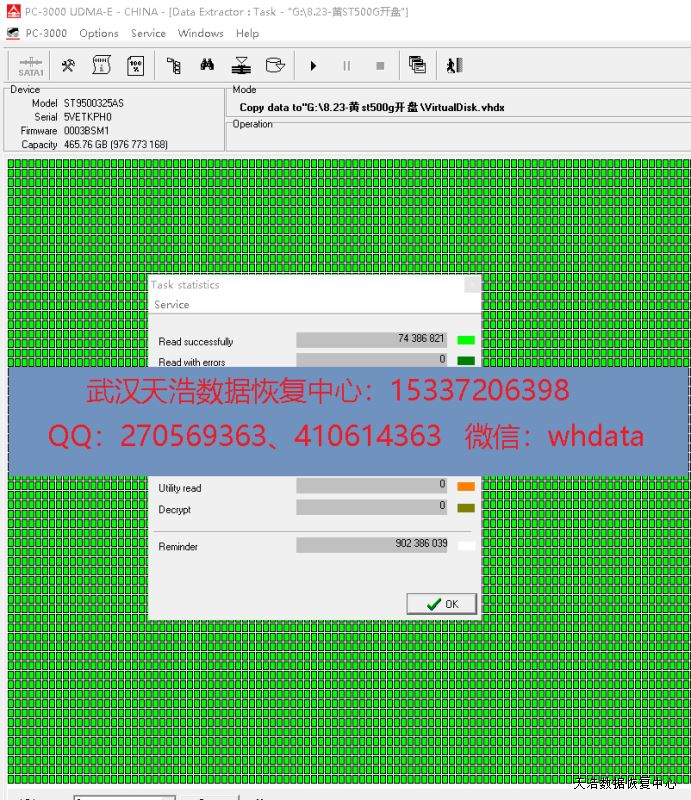 解决方案:收到硬盘后,接到数据恢复工具PC-3000 UDMA Express上,检测发现有一个磁头不良,我们在无尘环境打开硬盘,更换兼容的磁头,再接到数据恢复工具PC-3000 UDMA Express上,通电硬盘认盘,DE分头镜像,成功恢复客户硬盘里面的几乎全部数据!