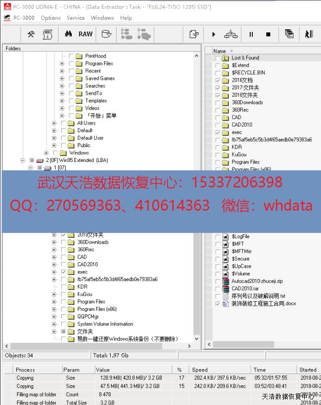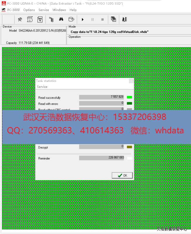 解决方案:收到硬盘后,使用专业的SSD恢复工具ACE PC3000 SSD,处理固件问题,虚拟重建编译器,用PC3000 DE虚拟镜像,成功恢复客户公司的大部分工作资料。
