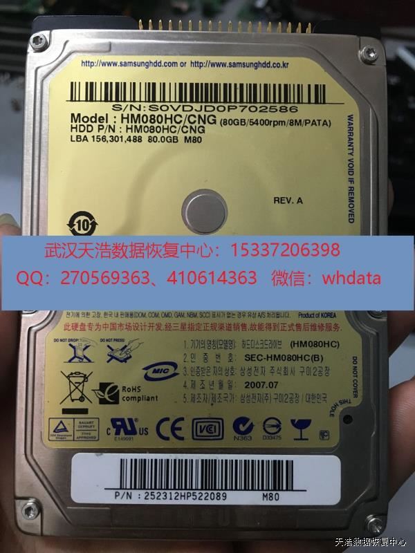硬盘型号:SAMSUNG HM080HC SN:S0VDJD0P02586 FW:AM100-16