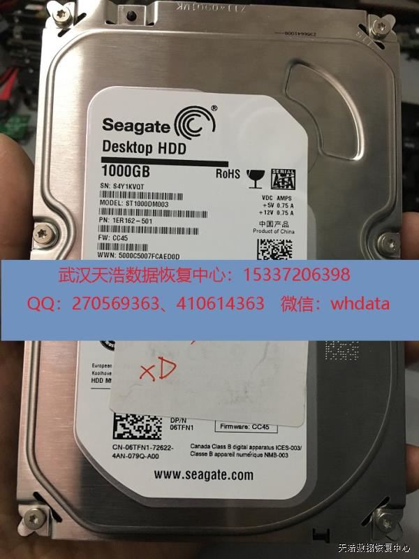 硬盘型号:ST1000DM003-1ER162 SN:S4Y1KVQT FW:CC45 电路板号:100724095