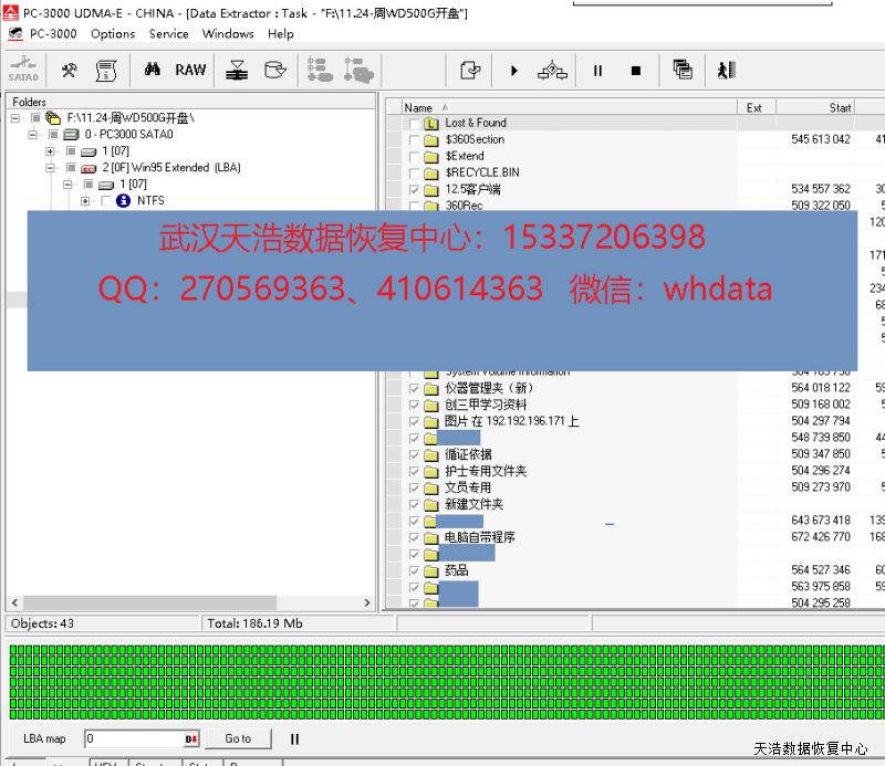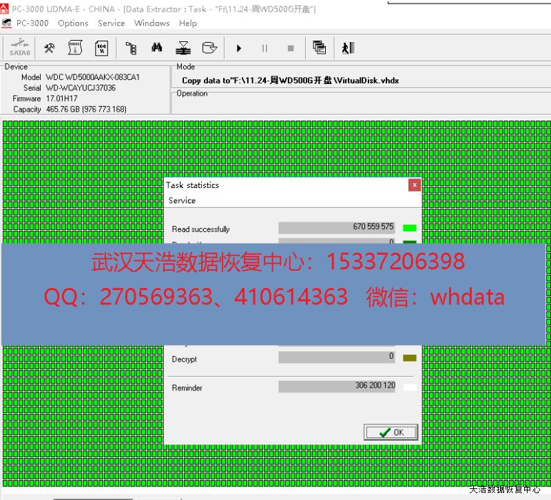 解决方案:收到硬盘后,我们在无尘环境更换匹配的磁头,再接到专业数据恢复工具上,通电硬盘正常认盘,DE成功看到分区和文件目录,镜像,成功恢复硬盘里面客户的几乎全部资料。