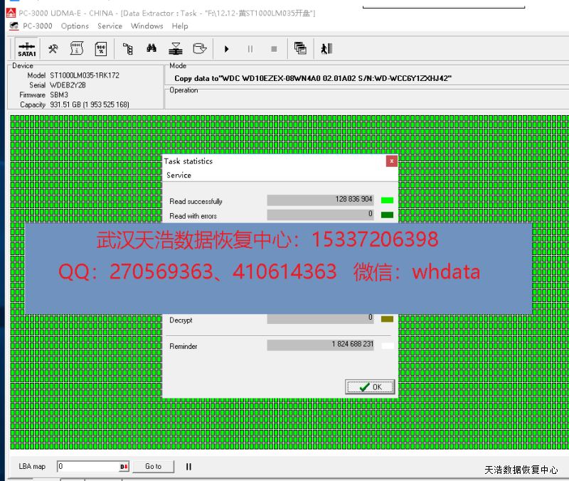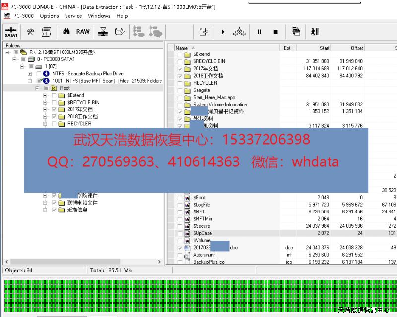 解决方案:收到硬盘后,在无尘环境更换匹配的磁头,接到数据恢复工具PC-3000 UDMA Express上,通电不认盘,修复固件有问题,再通电硬盘认盘,DE分头镜像,成功恢复客户公司硬盘里面的绝大部分工作数据!