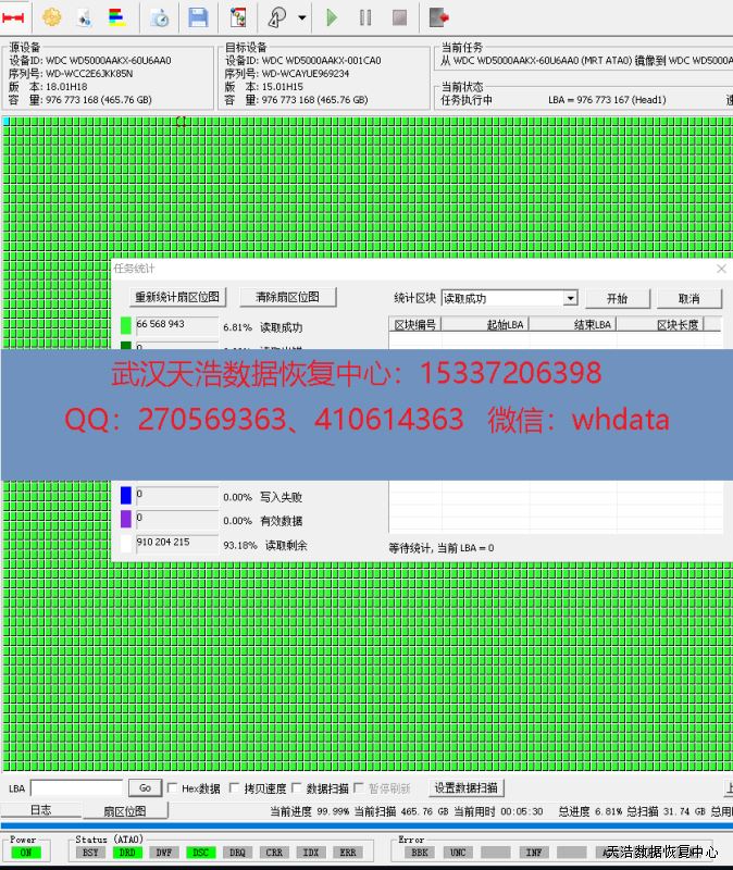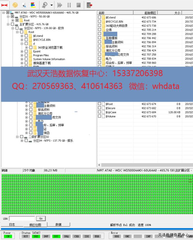 解决方案:收到硬盘后,我们在无尘环境更换匹配的磁头,再接到专业数据恢复工具上,通电硬盘正常认盘,DE成功看到分区和文件目录,镜像,成功恢复硬盘里面客户的几乎全部资料。