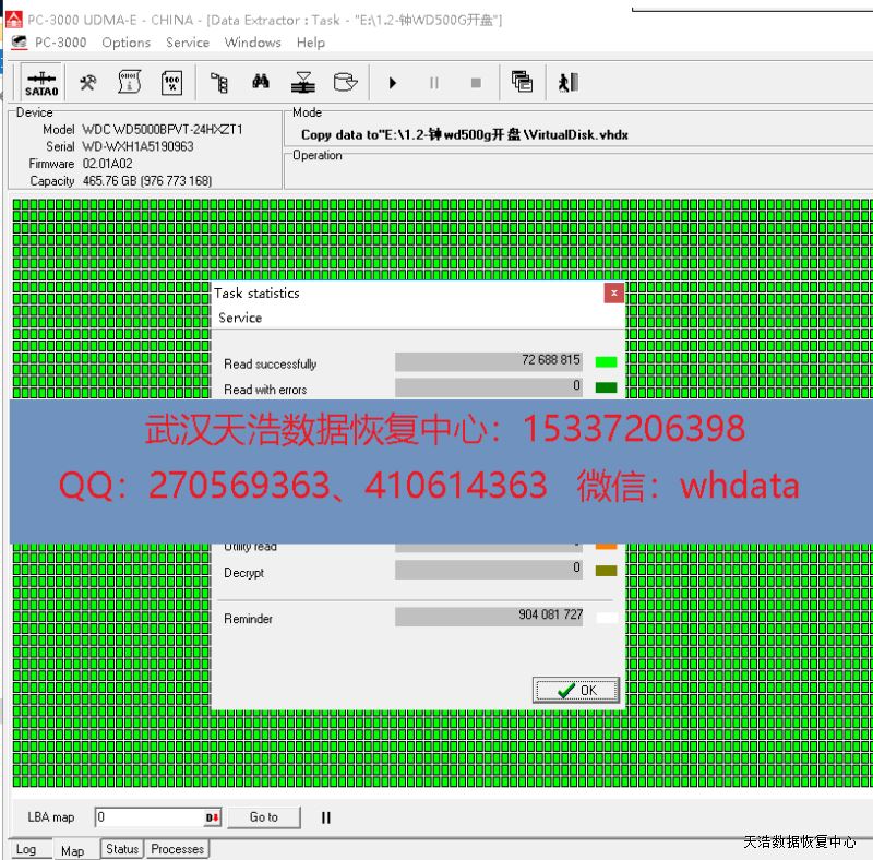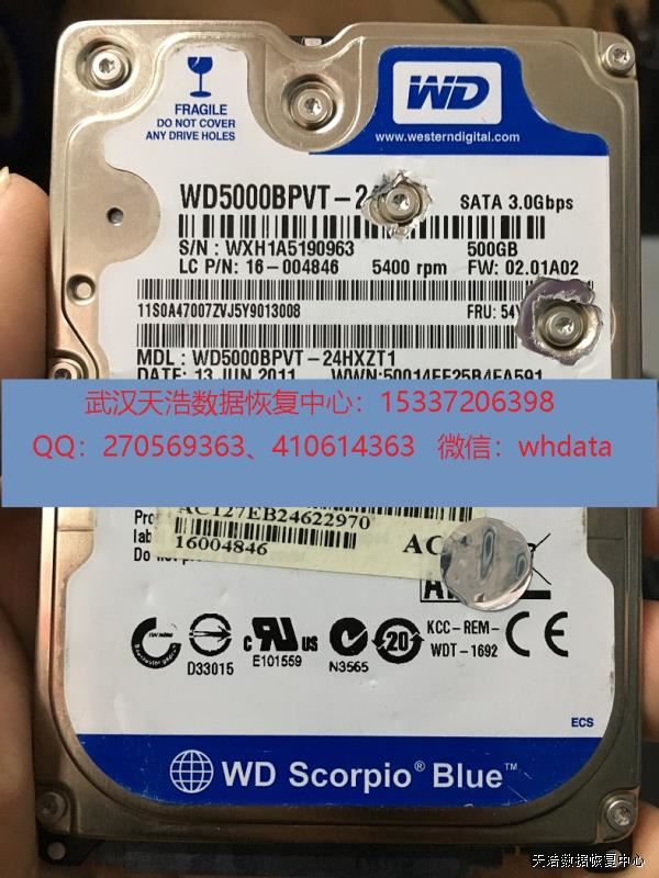 硬盘型号:WD5000BPVT-24HXZT1 SN:WXH1A5190963 FW:1000U 电路板:771692-005