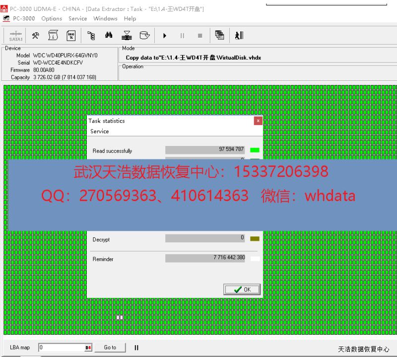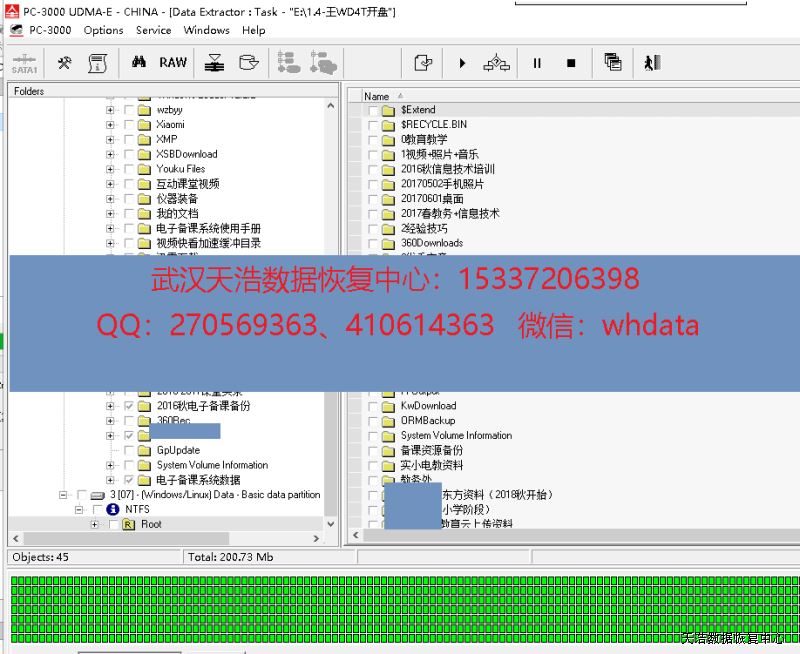 故障现象:一学校的硬盘,西数4T紫盘通电异响,里面有很多学校的教学资料。客户联系我们之后,直接坐火车来武汉,找我们现场开盘恢复数据。