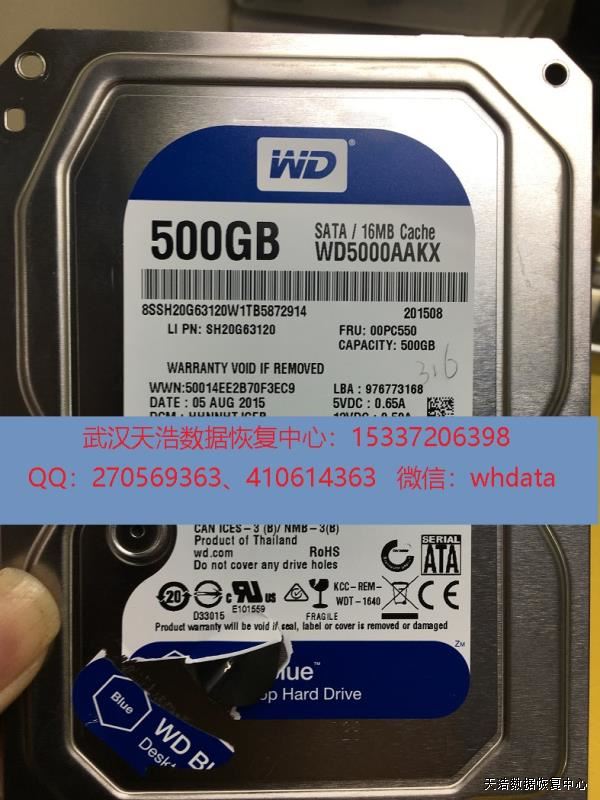 硬盘型号:WD5000AAKX-08ANVA0 SN:WCC2E7NKA817 FW:50044 电路板:771640-003