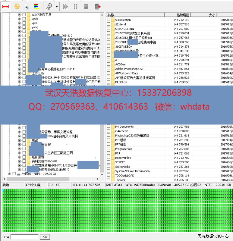 解决方案:收到硬盘后,我们在无尘环境打开硬盘,更换兼容的磁头,再接到专业的数据恢复工具上,通电硬盘认盘,DE分头镜像,成功恢复硬盘里面客户公司的几乎全部的工作资料!