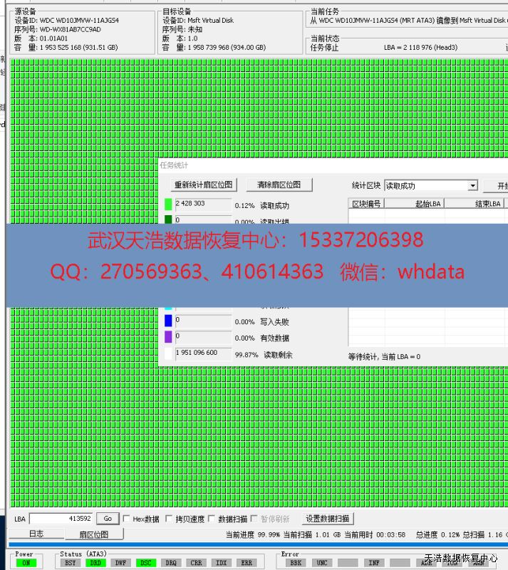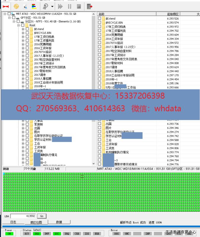 解决方案:收到硬盘后,我们在无尘环境更换匹配的磁头,再接到数据恢复工具上,通电硬盘正常认盘,DE成功看到分区和文件目录,镜像,成功恢复硬盘里面客户公司的几乎全部资料!
