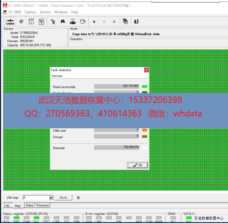 友情提示:当您的硬盘出现问题,建议最好是马上停止任何操作,保留最原始的状态,这样拿过来恢复的效果,一般都是最好的,费用也相对低些!这个硬盘,如果客户不是强拷的话,可能磁头不会损坏,也就根本不需要开盘!