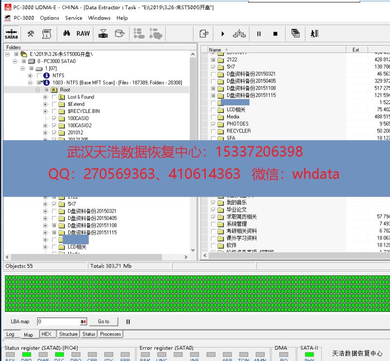 解决方案:收到硬盘后,接到数据恢复工具PC-3000 UDMA Express上,通电硬盘认盘,检测发现有一个磁头损坏 ,在无尘环境更换匹配的磁头,DE分头镜像,成功恢复硬盘里面客户多年的个人资料和工作资料!