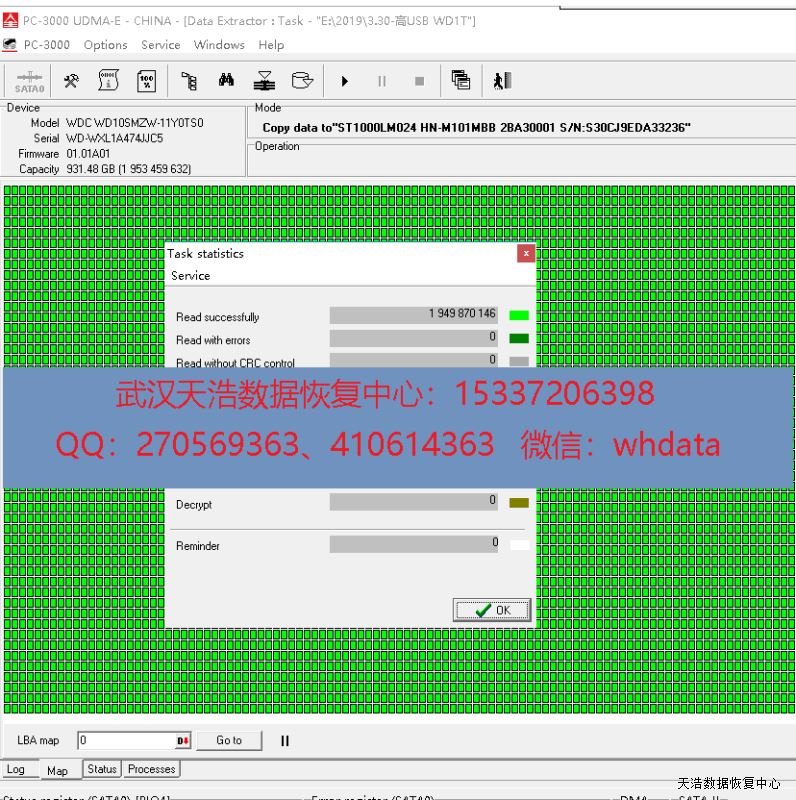 解决方案:收到硬盘后,我们更换兼容的无锁SATA电路板,再接到数据恢复工具上,处理固件问题后,DE成功看到分区和文件目录,镜像,成功恢复硬盘里面的大部分的照片数据!