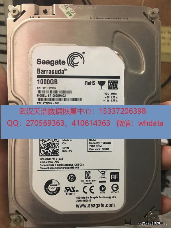 硬盘型号:ST1000DM003-9YN162 SN:W1D16VR2 FW:CC4B 电路板:100664987