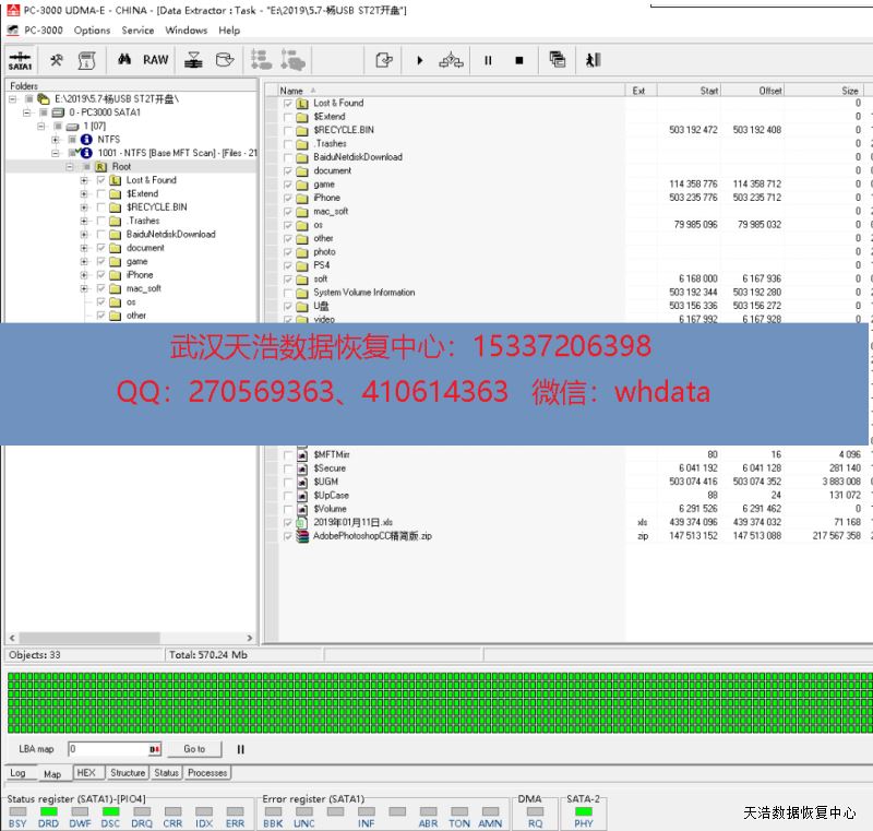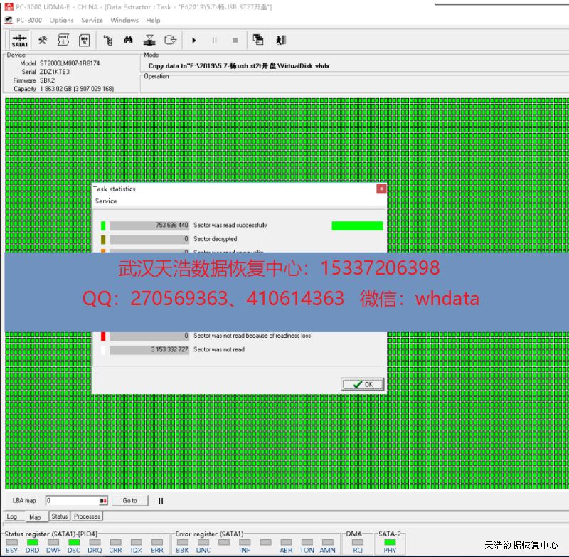 解决方案:收到硬盘后,我们在无尘环境更换兼容的磁头,再接到专业数据恢复工具上,通电硬盘认盘,DE分头镜像,成功恢复硬盘里面的照片和工作资料!