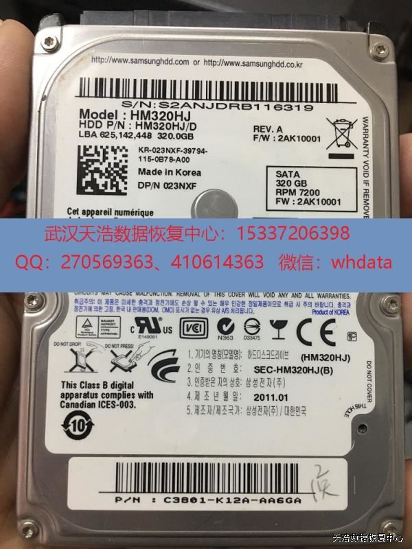 故障现象:三星320G笔记本硬盘,7200转,通电敲盘,通过朋友介绍找到我们,希望能帮忙恢复里面的数据。
