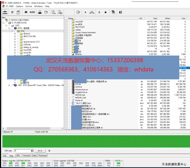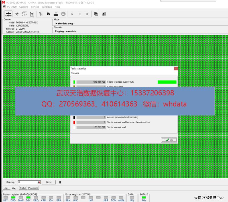 解决方案:收到硬盘后,我们在无尘环境更换兼容的磁头,再接到数据恢复工具上,通电认盘,DE镜像,成功恢复客户硬盘里面的绝大部分数据。