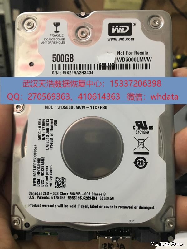 硬盘型号:WD5000LMVW-11CKRS0 SN:WX21AA2N3434 FW:2004P 电路板号:771859-001