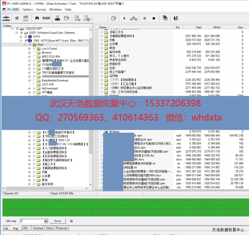 解决方案:收到硬盘后,我们在无尘环境更换兼容的磁头,再接到专业数据恢复工具PC3000 UDMA-E上,通电硬盘正常认盘,DE镜像,成功恢复硬盘里内几乎全部工作数据!
