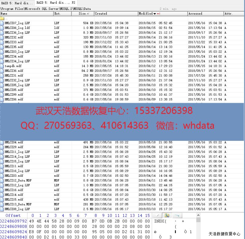 解决方案:我们收盘后,检测发现,2块有固件问题,我们使用专业工具修复硬盘固件问题,然后对每个硬盘做全盘物理镜像,镜像完再对镜像进行分析,得出RAID原始参数,重组RAID5,剔除先掉线的盘,里面所有数据库全部完美恢复,经客户验证数据库全部都Ok!