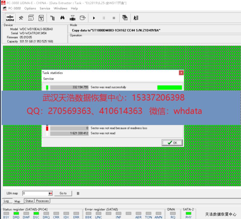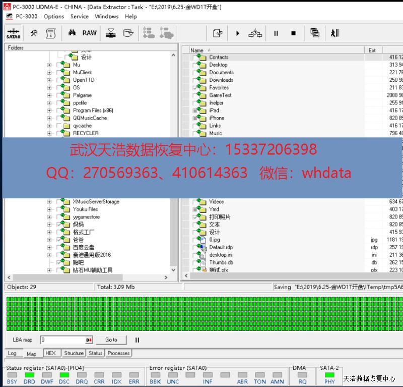 解决方案:收到硬盘后,我们在无尘环境更换兼容的磁头,再接到专业数据恢复工具PC3000 UDMA-E上,通电硬盘正常认盘,DE镜像,成功恢复硬盘内客户大部分的照片。