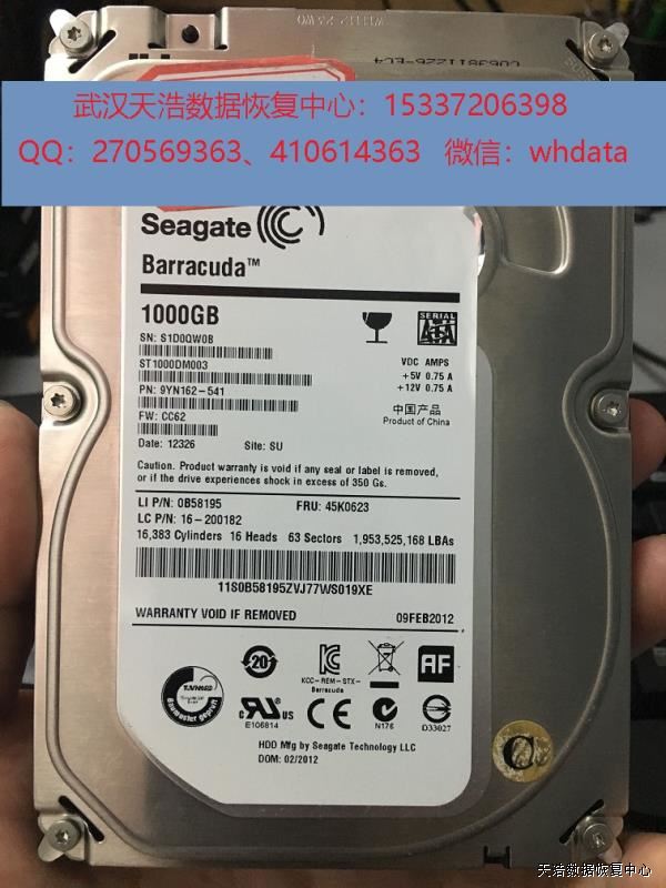 硬盘型号:ST1000DM003-1CH162 SN:S1D0QW0B FW:CC62 电路板号:100687658