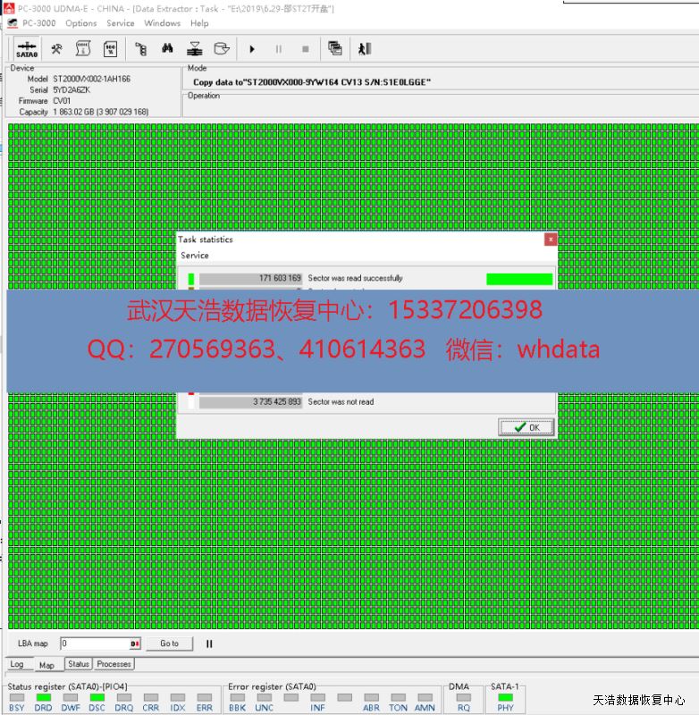 解决方案:收到硬盘后,我们在无尘环境更换兼容的全好磁头,再接到数据恢复工具PC-3000 UDMA Express上,检测发现固件问题,处理固件后,断电通电硬盘认盘,DE建立镜像任务,分头镜像,成功恢复硬盘内几乎全部照片和视频数据!